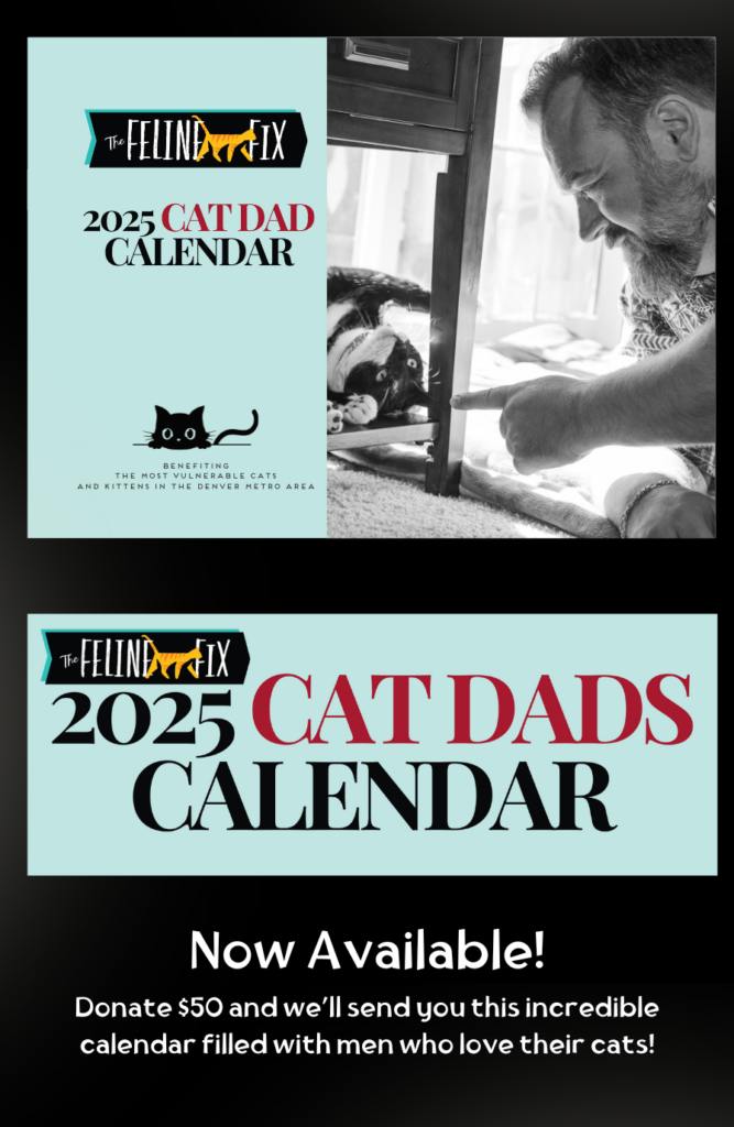 Grab the 2025 Cat Dad Calendar or a T-shirt and help care for cats in the Denver area!